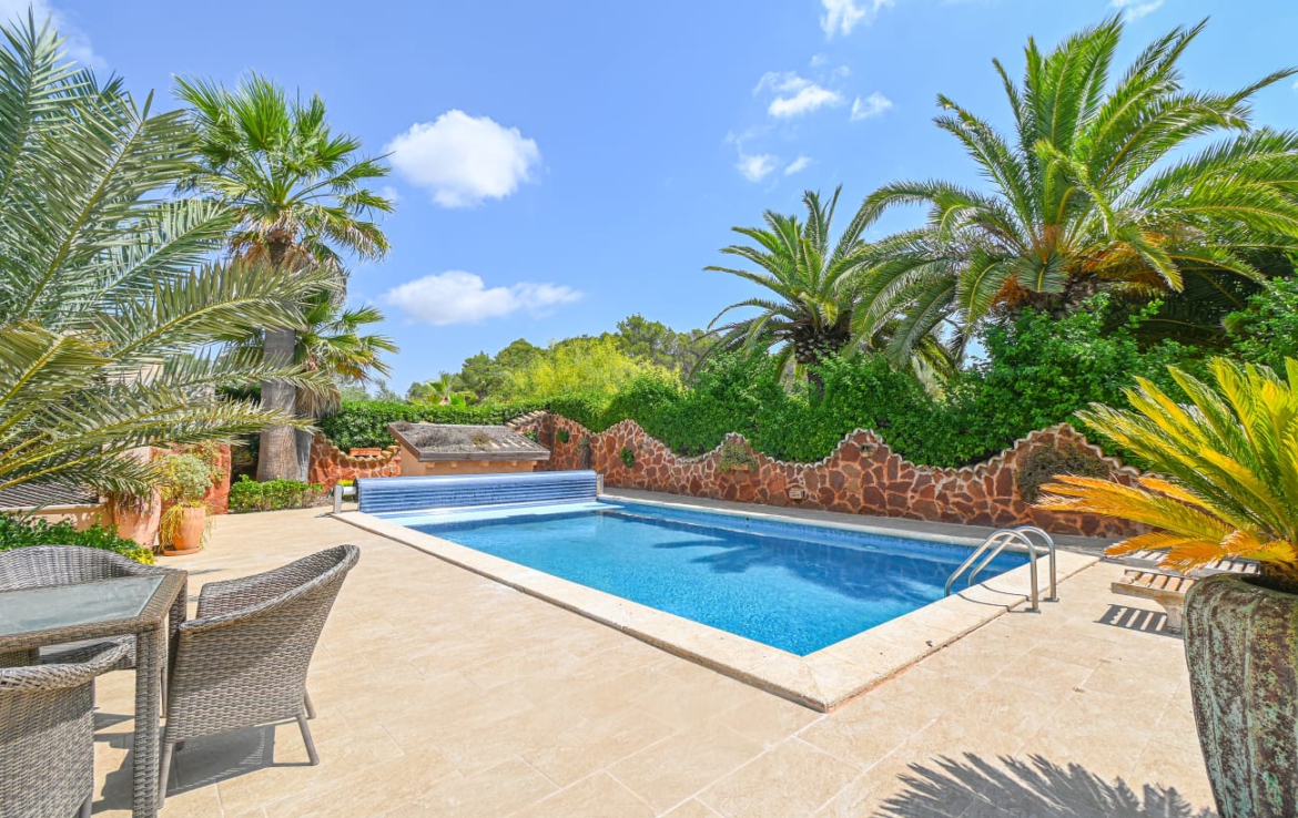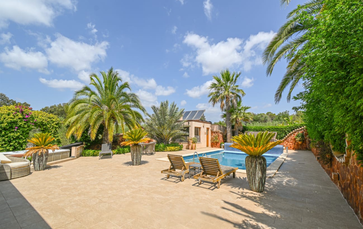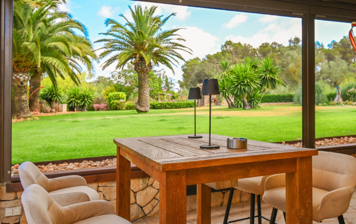Ein Haus voller Charme auf einem 43.000 m2 großen Grundstück, umgeben von viel Natur und Schönheit, in einer privilegierten ruhigen Lage. Sencelles ist nur 20 Minuten von Palma entfernt. Das zweistöckige Haus ist mit hochwertigen Materialien und sehr geschmackvoll gebaut. Das Erdgeschoss verteilt sich auf einen großen Eingangsbereich, ein WC, zwei Schlafzimmer, ein Ankleidezimmer und einen großen Badezimmerbereich mit Zugang zur Terrasse und zum Garten, mit Badewanne und Hydromassage-Dusche, ein sehr helles Wohnzimmer mit großen Bogenfenstern, eine beeindruckende Küche mit Essbereich, die mit den besten Materialien ausgestattet ist, und einen Weinkeller mit Glaswand. Die Küche bietet Zugang zu einer großen, 66 m2 großen Veranda, die mit einer automatischen Aluminiumverkleidung, einem Holzofen und Blick auf den Garten ausgestattet ist und sowohl im Sommer als auch im Winter genutzt werden kann. Auf derselben Etage befinden sich eine große Außenküche mit einer weiteren Veranda an der Vorderseite des Hauses, eine Waschküche und ein Grillbereich neben der Außenküche. Die Hälfte des ersten Stockwerks ist ein 40 m2 großes Gästeapartment mit Wohnzimmer, Küche, Schlafzimmer und Bad. Die andere Hälfte des Stockwerks besteht aus zwei großen Schlafzimmern, eines davon mit eigenem Bad und Balkon. Alle Zimmer sind sehr hell. Der schöne Garten beeindruckt mit hohen Palmen, Büschen, einheimischen Pflanzen und einer Rasenfläche. Es gibt ein 15 m2 großes Gewächshaus, mehrere Terrassen und Veranden mit Natursteinboden, einen 45 m2 großen beleuchteten Salzwasserpool, der durch eine motorisierte Solarabdeckung beheizt wird, einen Außenwhirlpool für 4 Personen, eine Sauna und ein mit Holz beheiztes Dampfbad, einen Fitnessraum mit WC und Dusche mit Hydromassage. Es gibt überdachte Einrichtungen für Pferde, einen Reitplatz, einen Fischteich, eine 40 m2 große Werkstatt, eine Garage und einen Schuppen für die Maschinen zur Instandhaltung des Anwesens. Das Grundstück verfügt über 350 Olivenbäume, 80 Orangenbäume, 20 Zitronenbäume und 300 verschiedene Obstbäume. Das Anwesen ist mit einer automatischen Bewässerung, Beleuchtung für den gesamten Garten und die Zufahrt zum Haus ausgestattet.